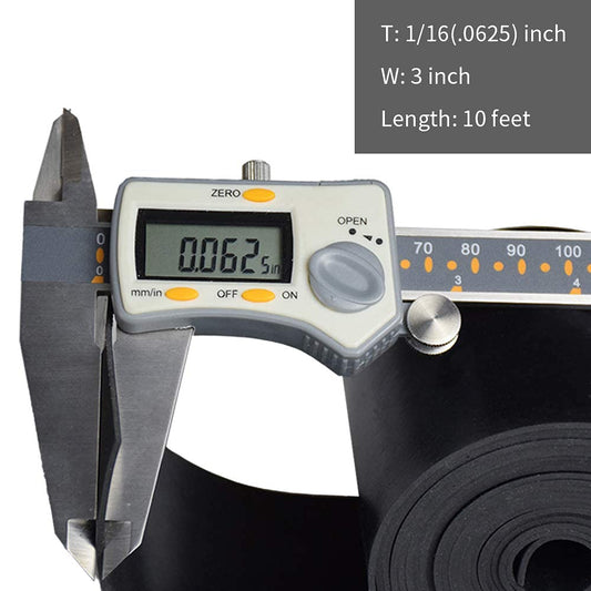DOBTIM Neoprene Rubber Strips 1/16 (.062)" Thick X 3" Wide X 10' Long, Solid Rubber Rolls Use for Gaskets DIY Material, Supports, Leveling, Sealing, Bumpers, Protection, Abrasion, Flooring, Black