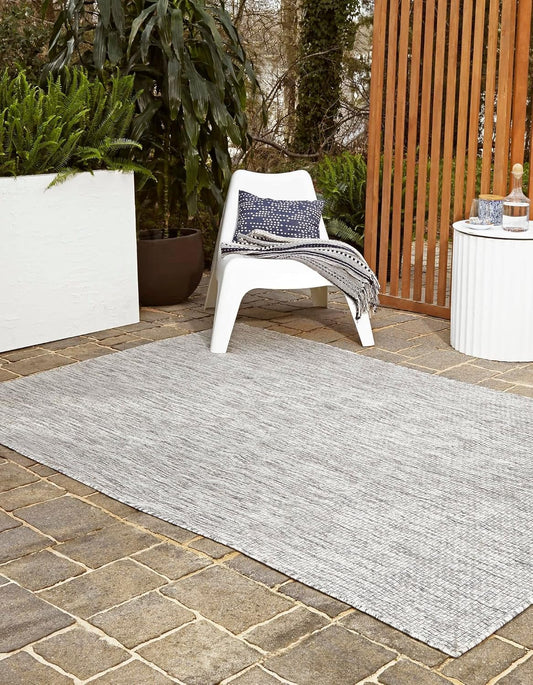 Unique Loom Collection Casual Transitional Solid Heathered Indoor/Outdoor Flatweave Area Rug (10' x 14' 1" Rectangle, Light Gray/Ivory)