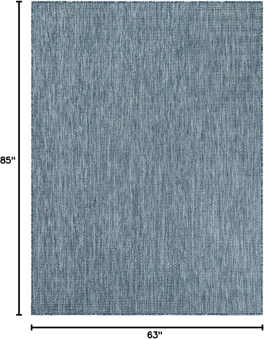 Unique Loom Outdoor Solid Collection Area Rug (5' 3" x 7' 1" Rectangle Blue/Navy Blue)