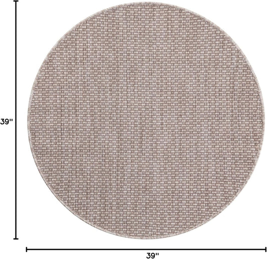 Unique Loom Outdoor Solid Collection Area Rug (4' 1" Round Light Brown/Ivory)