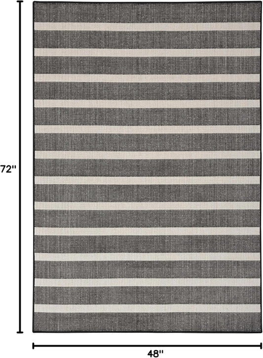 Nourison Home Positano Indoor/Outdoor Black Ivory 4' x 6' Area Rug, Easy Clean, Non Shedding, Bed Room, Living Room, Dining Room, Deck, Backyard, Patio (4x6)