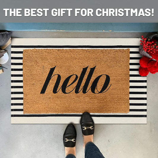 IOHOUZE Black Beige Striped Rug -2'x3' Front Door Rugs Outdoor, Small Washable Area Rug for Front Porch, Spring Summer Welcome Mats Outdoor Indoor, Doormat for Entryway Porch Entrance
