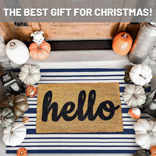 IOHOUZE Navy and White Striped Rug 3'x5' Front Door Rugs Outdoor, Washable Area Rug for Front Porch, Spring Summer Doormats Outdoor Indoor, Cotton Rugs for Entryway Porch Entrance