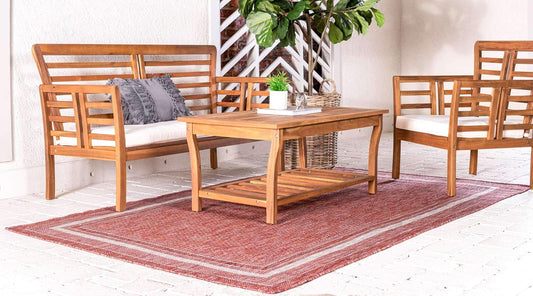 Unique Loom Outdoor Border Collection Area Rug - Soft Border (7' 10" x 11' 4" Rectangle, Rust Red/ Ivory)