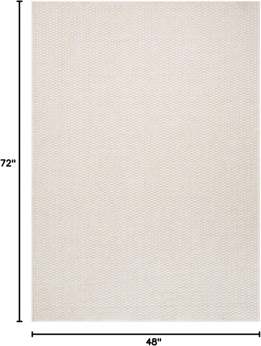 CAMILSON Easy Jute Rug 5x7, Indoor Outdoor Off-White Color Fiber Area Rugs for Living Room Patio and Kitchen Rug Herringbone Seagrass Woven Design Easy-Cleaning Washable Outside Carpet Alfombras 5 x 7