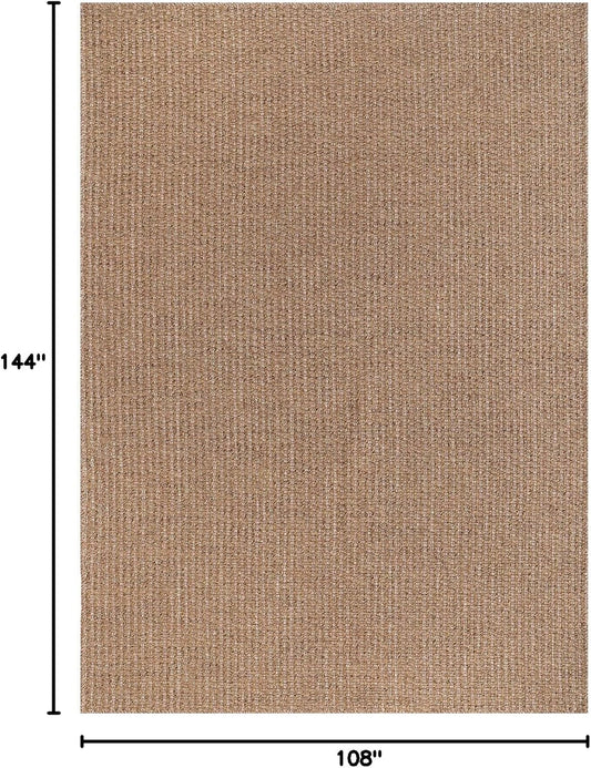 CAMILSON Easy Jute Rug 9x12, Indoor Outdoor Brown Color Fiber Area Rugs for Living Room Patio and Kitchen Rug, Solid Boho Woven Design, Easy-Cleaning, Washable Outside Carpet Alfombras (9 x 12)