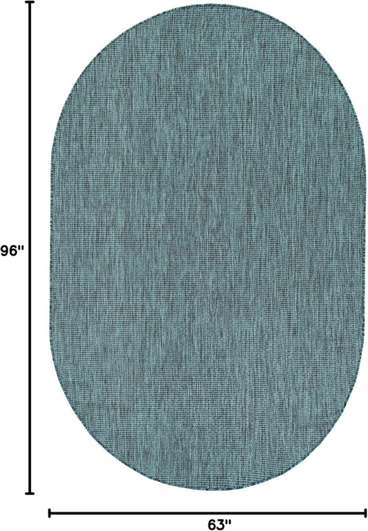 Unique Loom Outdoor Solid Collection Area Rug (5' 3" x 8' Oval Teal/Navy Blue)