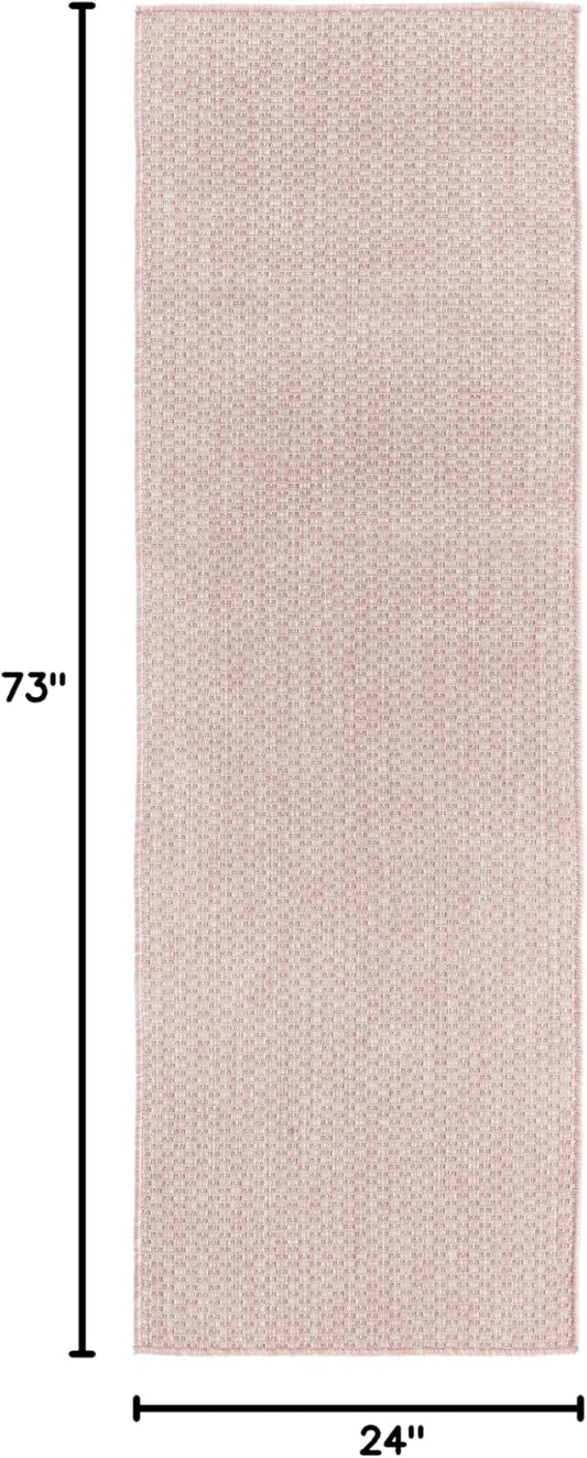 Unique Loom Collection Casual Transitional Solid Heathered Indoor/Outdoor Flatweave Area Rug (2' x 6' 1" Runner, Whisper Pink/Ivory)