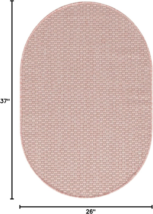 Unique Loom Collection Casual Transitional Solid Heathered Indoor/Outdoor Flatweave Area Rug (2' 2" x 3' 1" Oval, Whisper Pink/Ivory)
