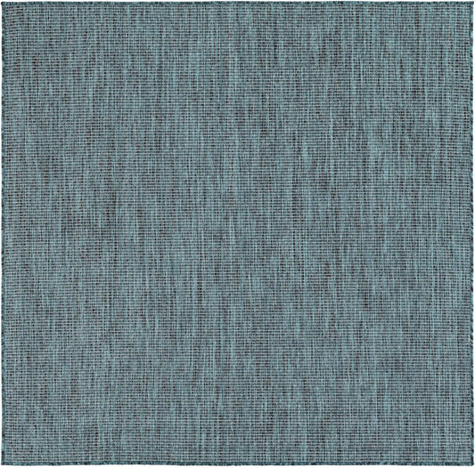 Unique Loom Outdoor Solid Collection Area Rug (5' 3" Square Teal/Navy Blue)