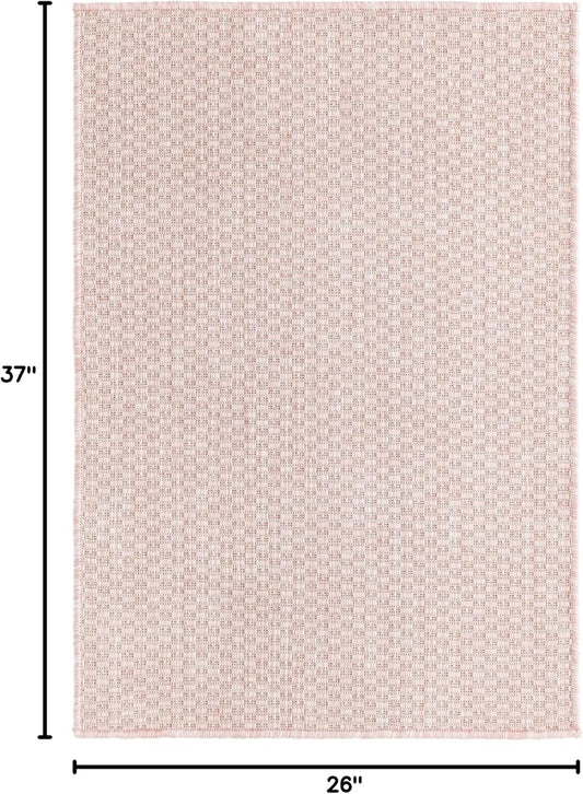 Unique Loom Collection Casual Transitional Solid Heathered Indoor/Outdoor Flatweave Area Rug (2' 2" x 3' 1" Rectangle, Whisper Pink/Ivory)