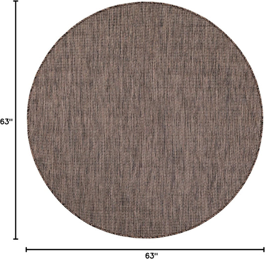 Unique Loom Outdoor Solid Collection Area Rug (5' 3" Round Light Brown/Ivory)