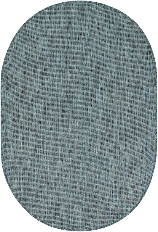 Unique Loom Outdoor Solid Collection Area Rug (4' 1" x 6' 1" Oval Teal/Navy Blue)