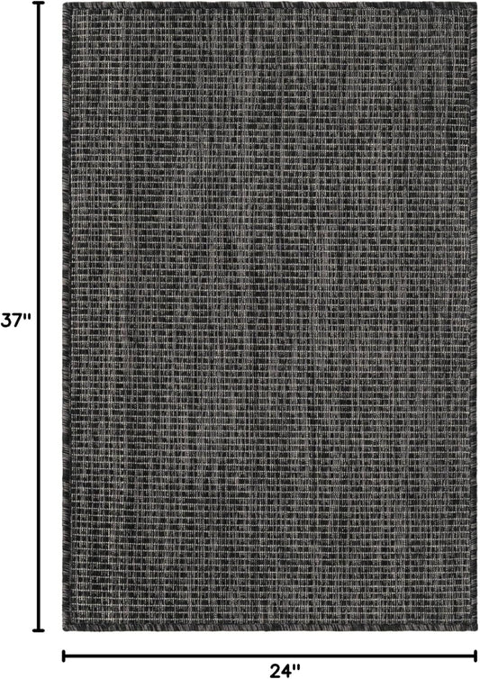 Unique Loom Collection Casual Transitional Solid Heathered Indoor/Outdoor Flatweave Area Rug (2' x 3' 1" Rectangle, Black/Ivory)