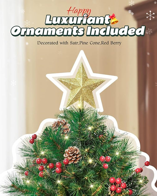 [ 8 Modes & Timer] 24 Inch Small Tabletop Christmas Tree with 50 Warm White Lights Star Treetop and Ornaments Artificial Mini Christmas Tree Indoor Home Table Christmas Decorations
