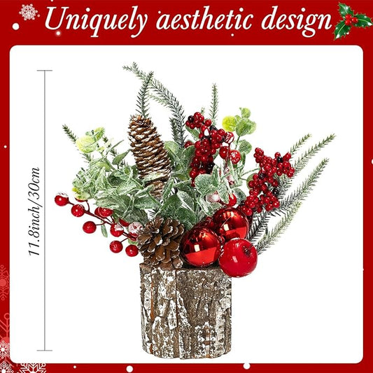 Small Christmas Tree for Tabletop, Artificial Mini Christmas Tree Decorations with Red Berry Pine Cone Pine Picks, Xmas Ornaments Indoor Home Holiday Decor (1 Pack)
