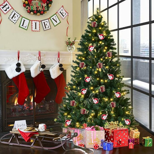 Happygrill 6.5 Feet Christmas Tree with Sturdy Metal Stand Artificial Xmas Tree with Pine Cones Red Berries