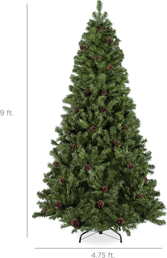 Best Choice Products 9ft Pre-Decorated Holiday Christmas Tree for Home, Office, Party Decoration w/2,028 Tips, Pinecones, Metal Base โ Green