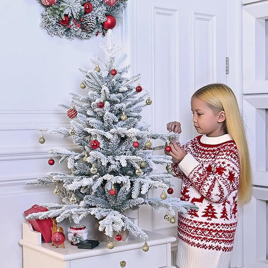 Prelit Flocked Christmas Tree, Artificial Small Christmas Tree with Led Lights, Frosted LED Xmas Tree with Snow (3FT-Lights)