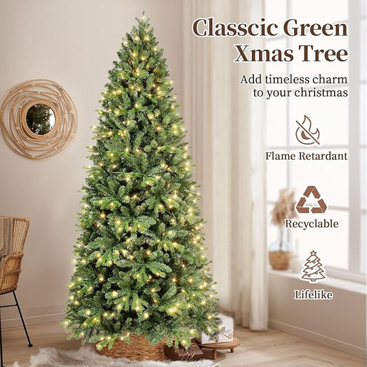 9ft Christmas Tree Prelit, Artificial Christmas Tree with Lights & Mixed 4206 PE PVC Tips, Premium Realistic Spruce Lighted Up LED Christmas Tree for Office Home Decor with Auto Hinged