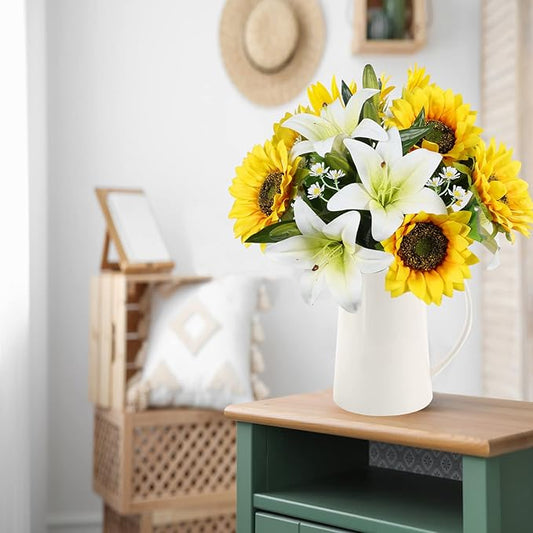 HUAESIN Artificial Sunflowers Faux Sunflowers Bouquet with Tiger Lilies Silk Flower Arrangements for Home Baby Shower Living Room Farmhouse Table Centerpieces Cemetery Flowers for Graves