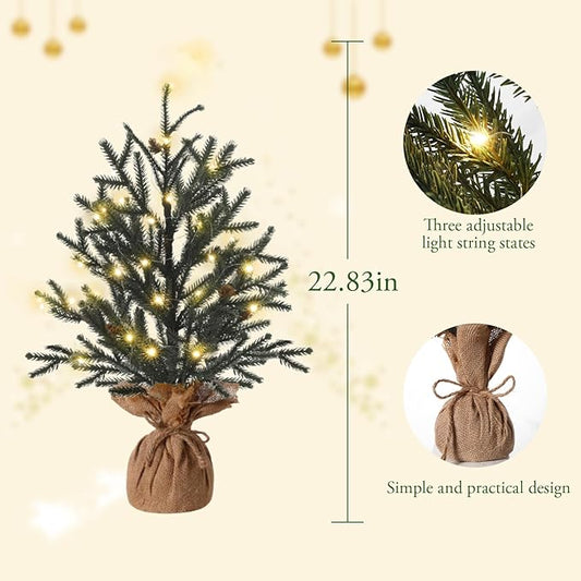 Artificial Mini Christmas Tree Tabletop - 21.6" Small Xmas Norfolk Pine Tree with Burlap Weighted Base Miniature Christmas Decor Centerpiece for Home Kitchen Holiday Party Farmhouse Desktop Indoor