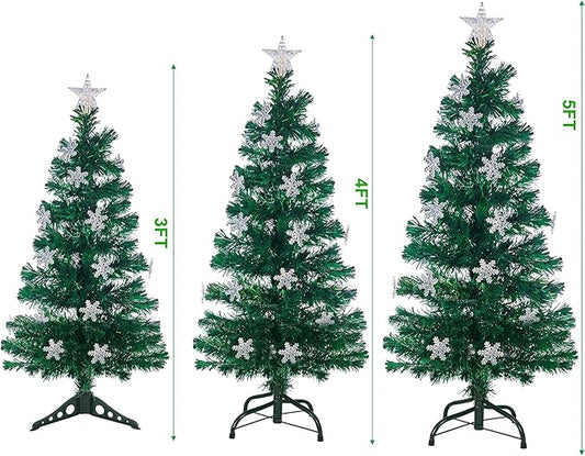 Juegoal 5 ft Pre-Lit Artificial Christmas Tree, Lighted Optical Fiber Xmas Trees with RGB Color Changing LED Lights, Snowflakes & Top Star, Festive Party Holiday Fake Multicolored Tree with Metal Legs