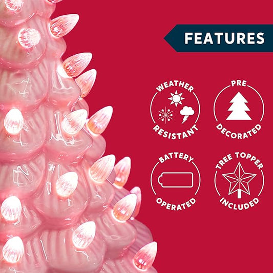 Joiedomi 12" Pink Ceramic Christmas Tree, Prelit Tabletop Christmas Tree Decoration with Extra Pink Top Star & Bulbs with LED Lights for Best Desk Decoration Xmas Tabletop Decor Indoor Home