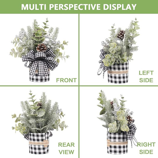 Small Buffalo Check Plaid Christmas Tree, Artificial Mini Tabletop Christmas Tree Decorations, for Winter Home Hliday Party Xmas Decor - Black/White.