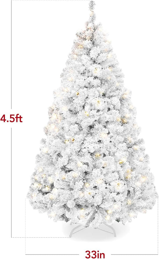 Best Choice Products Pre-Lit White Christmas Tree, 4.5ft Artificial Snow Flocked Full Fir Tree, Holiday Decoration w/ 200 Lights, 400 Branch Tips