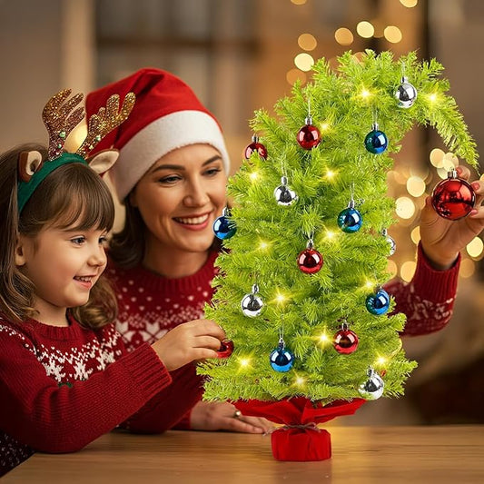 Super Holiday Small Winter Christmas Tree, Artificial Mini Tabletop Christmas Tree Decorations with Christmas Ball Ornaments, for Home Party Thankgivings Christmas Decor, Indoor.
