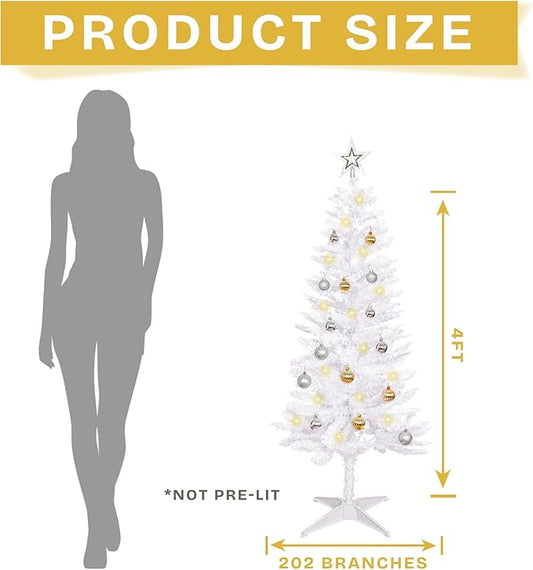 Sunshine White Christmas Tree with Light 4ft Artifical Full Christmas Tree with Ball & Star Ornaments 8 Lighting Modes for Holiday Decor