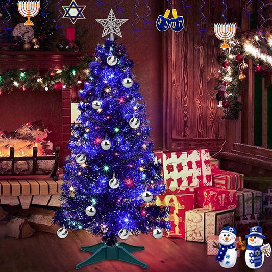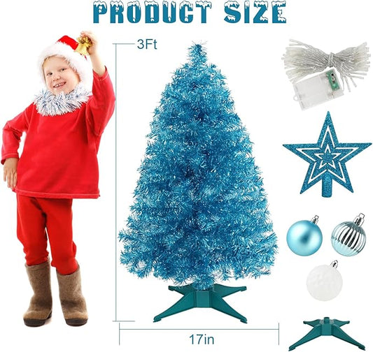 Sunshine Blue Christmas Tree with Light 3ft Artifical Full Christmas Tree with Ball & Star Ornaments 8 Lighting Modes for Holiday Decor