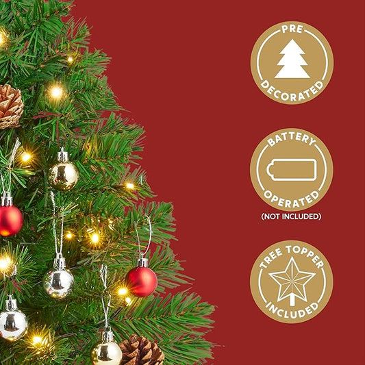 4 Ft Christmas Tree Remote Control 8 Modes Dual Color Change Timer 100 Warm White&Colored Lights 18 Christmas Ball Ornaments 3D Star Battery Operated Small Xmas Tree Table Indoor Holiday Party Decor