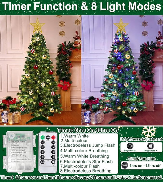 Remote 8 Mode & Timer 4 Ft Christmas Tree with 100 Warm White & Multi Color Change Lights 18 DIY Balls Ornaments 3D Star Battery Operated Small Xmas Tree Table Indoor Holiday Party Decor (Green)