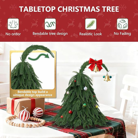 Tabletop Norfolk Pine Christmas Tree, 2FT Green Mini Artificial Christmas Topiary Tree with Norfolk Branch, Small Xmas Tree for Christmas Gnome Holiday Indoor Decoration