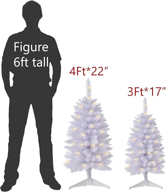 3ft Prelit Artificial Small Mini Christmas Tree with Warm White Multi-Color LED Lights, Timer Battery Operated, Perfect for Xmas Tabletop Decorations, Home, Kitchen, Dining Table top White
