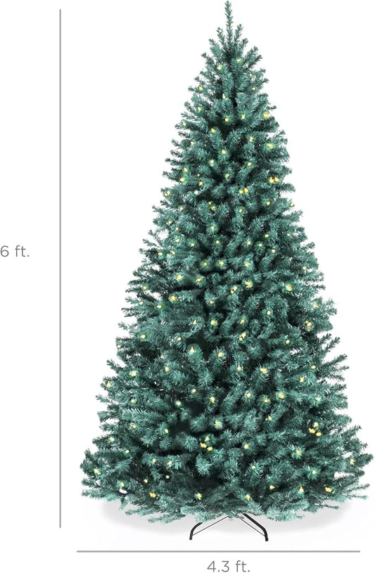 Best Choice Products 6ft Pre-Lit Blue Spruce Christmas Tree, Artificial Full Hinged Decor, Holiday Decoration w/ 250 Warm White Incandescent Lights, 900 Tips, Foldable Metal Base