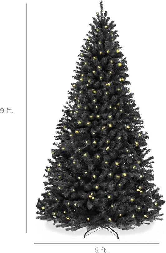 Best Choice Products Artificial Christmas Tree, 9ft Premium Pre-Lit Realistic Spruce Holiday Décor w/Dense Branches, Metal Base - Black Spruce