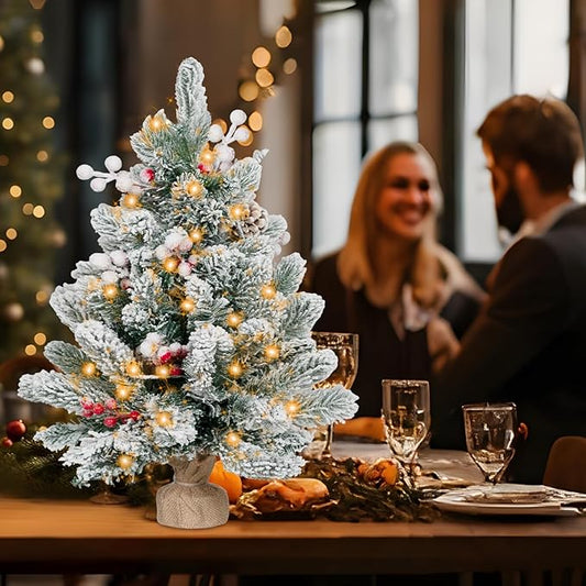 2FT Small Christmas Tree,Flocked Artificial Mini Christmas Tree with Lights,Tabletop Xmas Tree with Ornaments,Christmas Decoration for Party by DNKMOR