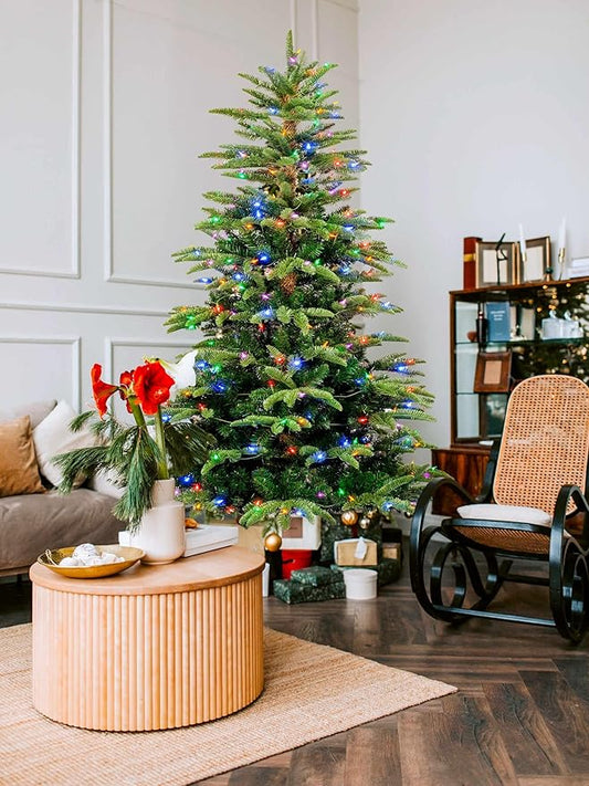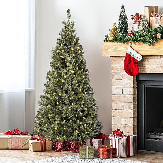 YULETIME 6.5ft Pre-Lit Christmas Tree, Realistic Spruce Holiday Decorative Tree with UL Listed 300 Multicolor LED Christmas Lights (6.5' Realistic Spruce Multicolor)