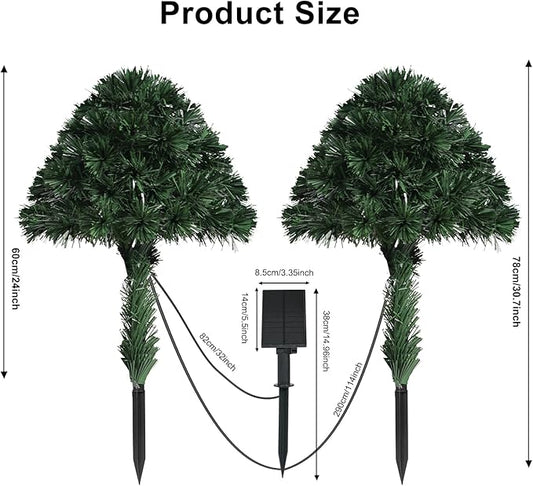 2 Pack Outdoor Christmas Tree with Lights, Fiber Optic Xmas Trees Battery Operated with Multi-Color LEDs, 24 Inch Artificial Solar Power Christmas Tree for Porch Yard Garden Christmas Decor