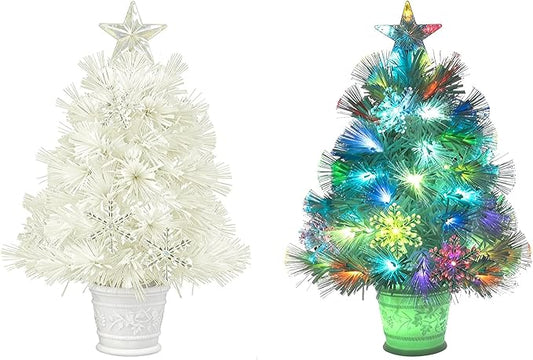 Artificial Christmas Tree, 24inch Small Christmas Tree White Fiber Optic Prelit Tabletop Xmas Tree with 67 Led Lights 7 Colors Lighted Christmas Tree Holiday Home Decor