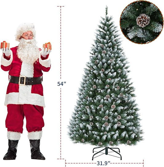 Naomi Home 4.5ft Christmas Tree with Lights, Realistic Traditional Prelit with Pine Cones, Foot Pedal 561 Branch Tips, 300 Warm Lights and Metal Stand, Aritificial Tree
