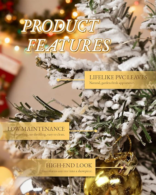 2FT Snow Flocked Mini Christmas Tree with Lights, Pre-Lit Small Christmas Tree for Home, Artificial Xmas Tree for Office, Shop, Bar, Party, Indoor Outdoor Decoration (Battery Not Included)