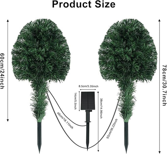 2 Pack Fiber Optic Christmas Tree, Small Outdoor Led Christmas Tree Solar Powered 24 Inch Artificial Xmas Trees with Lights for Front Porch Yard Garden Pathway Cemetery Holiday Decor
