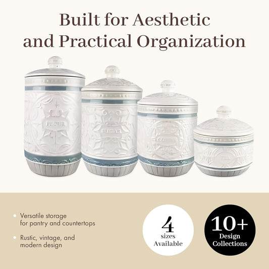 Young's 4 Piece Ceramic Canisters Sets for Kitchen, Country Style Ceramic Containers for Flour, Sugar, Tea and Coffee, Storage Containers with Lids 10.75"