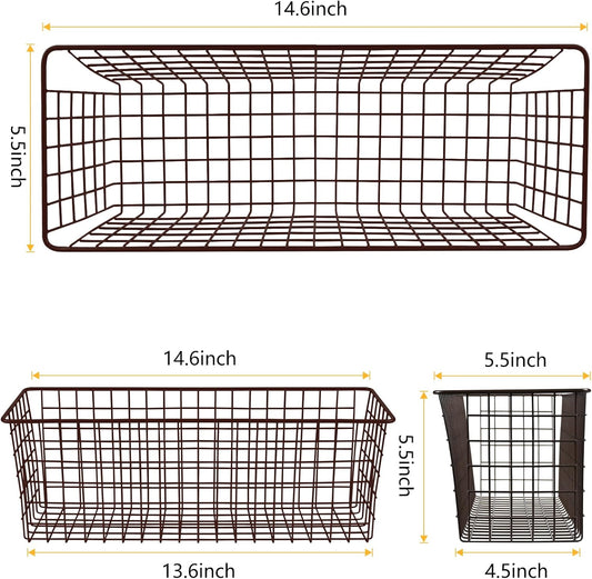 2 Sets Extra Large Hanging Wall Basket, Brown Metal Wire Baskets with Steel Hooks for Organizing, WallmountedFruit Vegetable Toy Snack Storage, Home Kitchen Bathroom Laundry Pantry Organizer