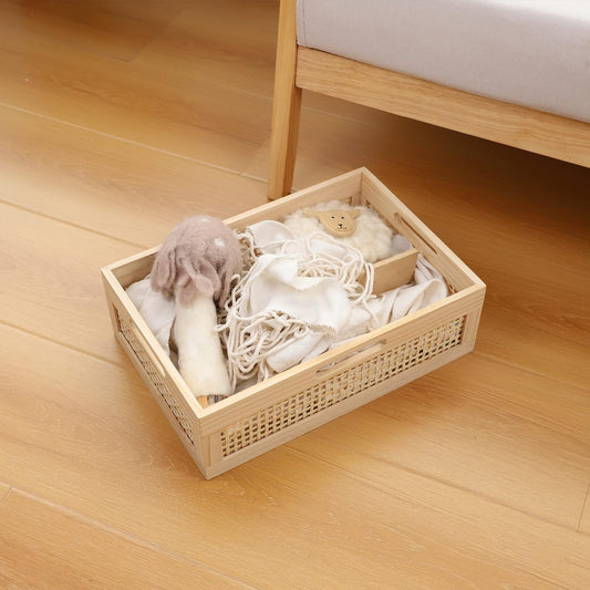 YRMT Wooden Baskets Shallow Wood Storage Basket Crate with Handles Decorative Storage Bins Organizer Rustic Farmhouse Countertop Basket for Shelves,Pantry,Kitchen