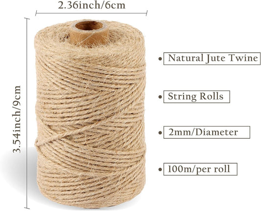 Natural Jute Twine Rope (1.5mm/2mm/3mm/6mm) Durable String for Handmde Crafts,Gardening Applications,Home Gardening,Cat Scratching Post,Gift Packaging... (2mm*328ft)